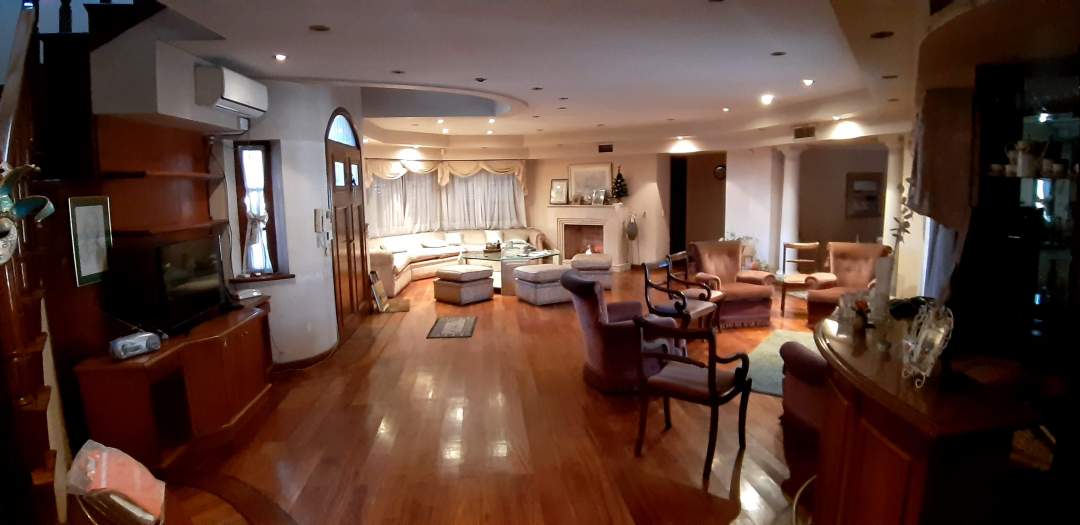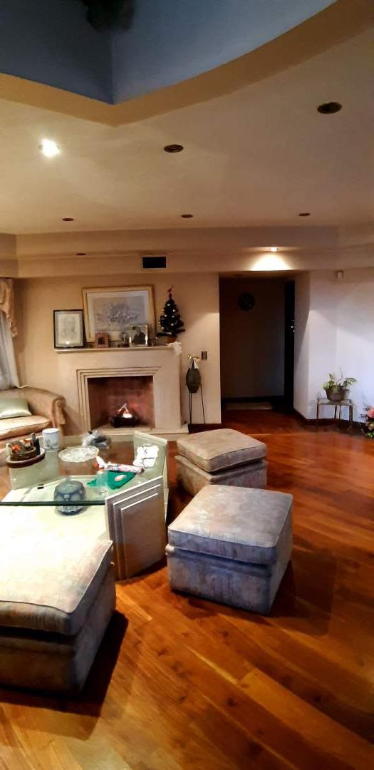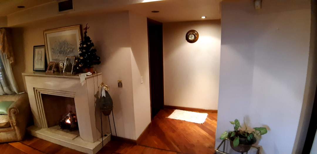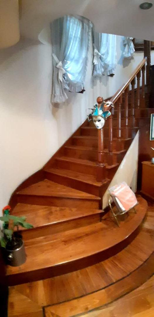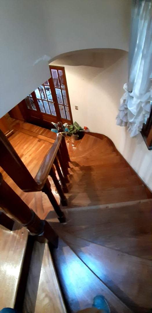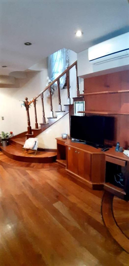 P.B: Amplio living comedor con hogar, piso tarugado, cocina comedor diario amplia y luminosa equipada con muebles alto y bajo mesada.