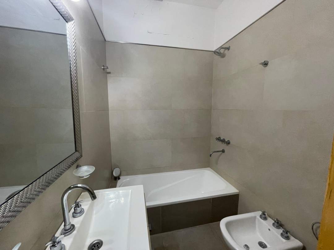 - Departamento en el primer piso de cuatro ambientes con un amplio living-comedor al frente, escritorio o tercer dormitorio, hall de recepción, Dos dormitorios, dos baños completos hechos a nuevo, amplia cocina-comedor hecha a nuevo, patio con lavadero cubierto y terraza con posibilidad de construir.