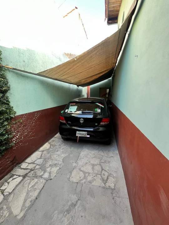 Cochera semicubierta con acceso directo a la cocina y al patio.
