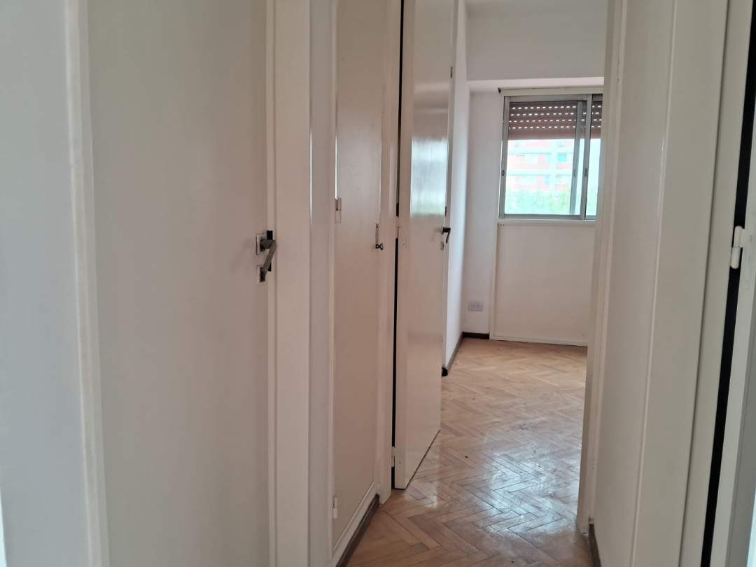Departamento 3 ambientes en edifio torre, excelente ubicación con living comedor, cocina separada con lavadero, baño completo, dos dormitorios, balcón. Pisos de madera planificados con calefacción central