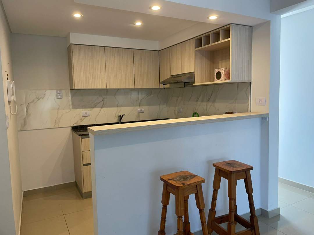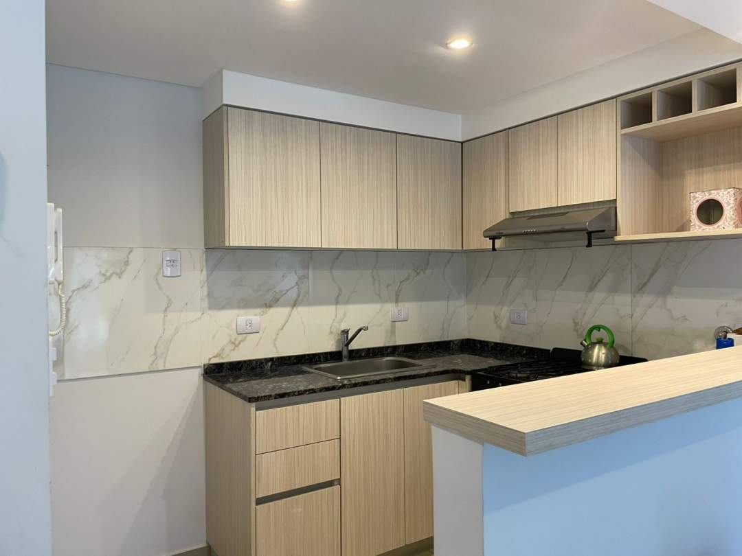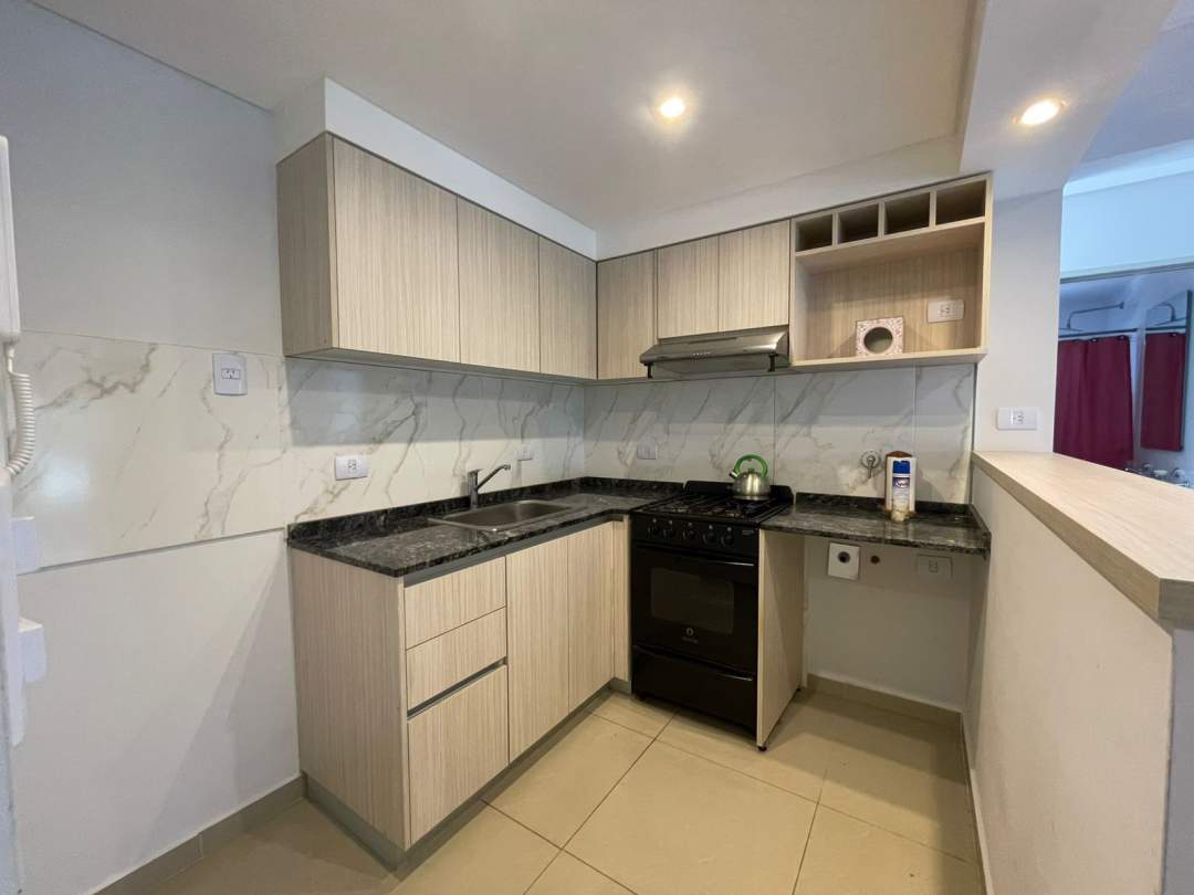 • Cocina totalmente equipada con bajo mesada, alacenas y barra desayunadora.